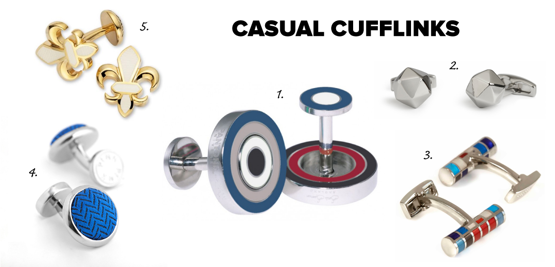 If you are looking for your one and only pair of formal cufflinks, pick something posh and timeless and think of it as an investment you can later pass on to your offspring. The formal cufflinks should be simple and elegant, understated and refined, in gold or silver without excessive embellishment. For more affordable options, you should inspect the offer of vintage pieces at your favorite antiques store.