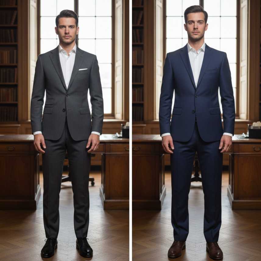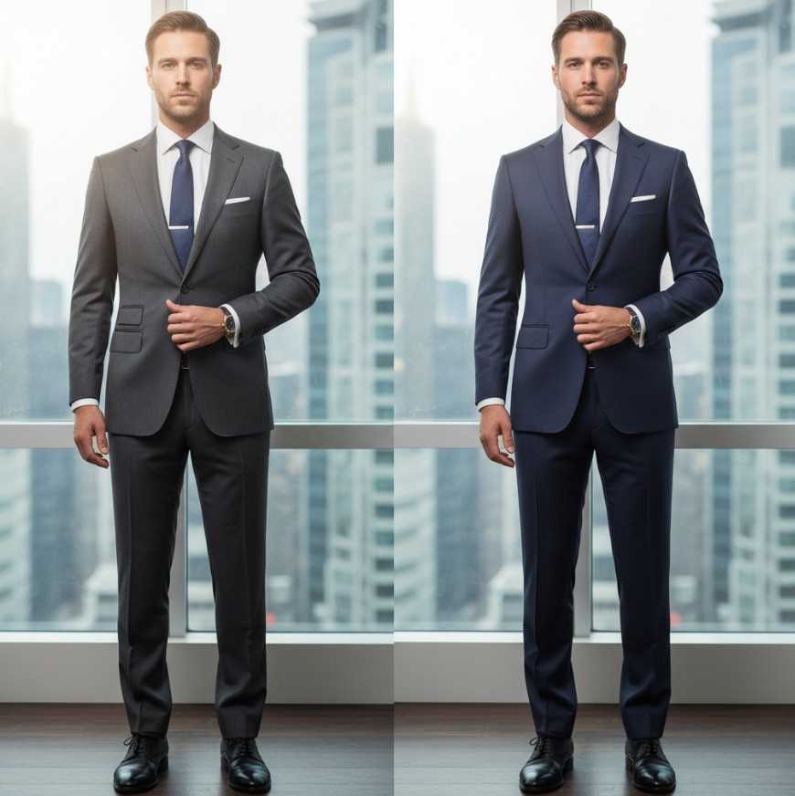 - The Navy Blue Suit: Navy is the color of credibility. While equally professional to charcoal, it projects a level of stability and trustworthiness that can be perceived as more approachable, making it an impeccable choice for client consultations, networking events, and daily office wear. For a deep-dive into the strategic differences and how to make the right choice for your first critical purchases, you may want to explore a detailed comparison of navy vs. charcoal: choosing your first and second suit.